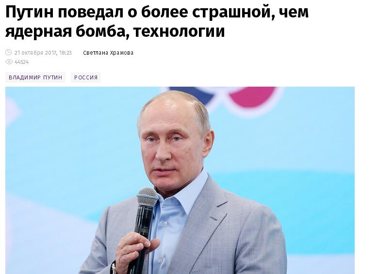 据俄罗斯《消息报》报道,本月21日,在俄罗斯索契举行的国际青年节上,普京再就人类科技新突破发出警告,称通过基因重组创造的“人类战士”不但可成真,而且比核弹更可怕。