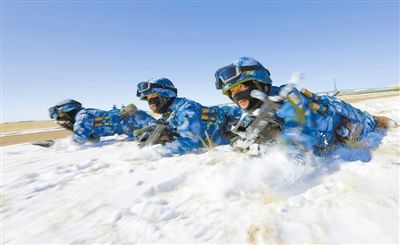 从南海之滨到塞北大漠,面对艰苦的环境,“两栖霸王花”训练热情丝毫不减。出枪、卧倒、匍匐前进……她们和男兵一样爬冰卧雪训练,巾帼不让须眉,成为冰雪训练场上一道靓丽的风景线。