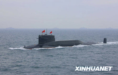 接受检阅的中国战略核潜艇。(中国军网 乔天富摄)