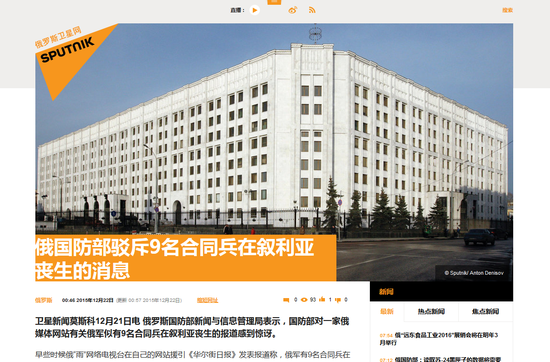 俄罗斯卫星新闻莫斯科12月21日电 俄罗斯国防部新闻与信息管理局表示,国防部对一家俄媒体网站有关俄军似有9名合同兵在叙利亚丧生的报道感到惊讶。