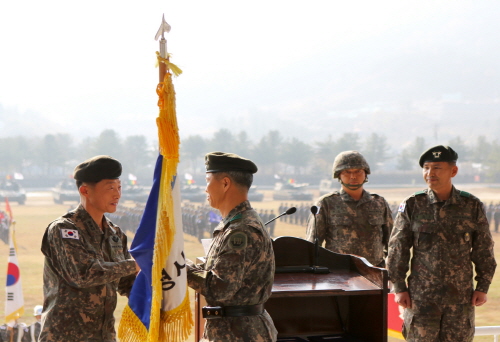 2015年11月,李石九和金善浩交接师团旗。