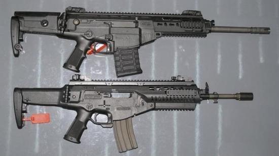首先是意大利伯莱塔公司的ARX-200(上)与ARX-160(下)。ARX-200型步枪是在ARX-160基础上加强结构,将ARX-160的5.56毫米口径改为北约制式7.62X51毫米口径而成,并且采用了比赛级重枪管,直观的看上去,意大利这两款枪外观都十分现代化,外壳都使用了高强度工程塑料包裹,同时采用从机匣盖一直延伸到前准星的直通一体化导轨,且前护木三面也有导轨,时髦,漂亮,做工精良且附件通用性好,意大利人很聪明的同时推出这两款步枪来取代巴军目前使用的5.56毫米小口径和7.62X39中间威力口径枪弹,可见是有备而来。
