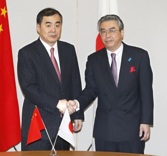 中日副外长级会谈,中国外交部部长助理孔铉佑(左)和日本外务审议官杉山晋辅(右)