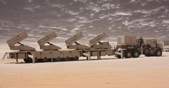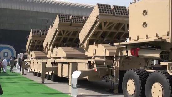 图中便是阿联酋的约巴龙火箭炮系统。该系统上总共有4个火箭弹发射架,在2分钟内可以打出240发122毫米火箭弹。