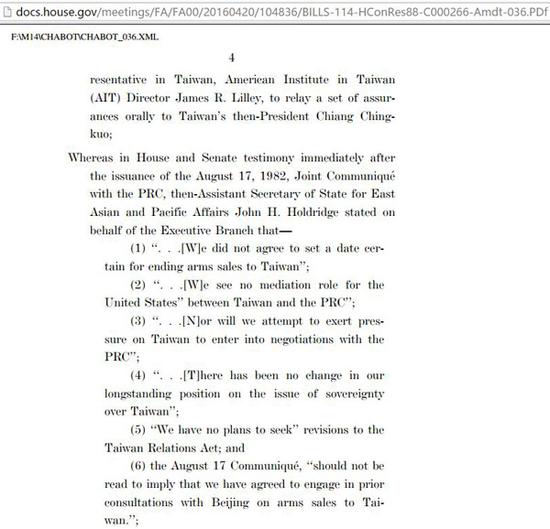 史蒂夫·夏波特议员提出的这项议案,最后是修改为“旧版本”通过的,这让民进党有点失望。和笔者前面所找到的“费浩伟版”略有不同的是,修改后版本里面的“中华民国”变成了“台湾”。