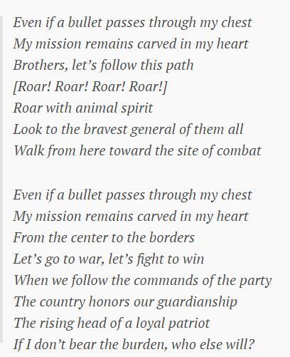 我们先来看看外媒翻译的《战斗宣言》英文版歌词: