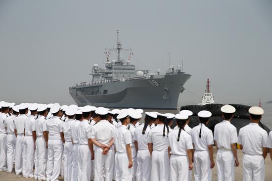 作为世界上仅有的两艘专用指挥舰之一,“蓝岭”号曾五次访问上海,可谓上海的“老朋友”。“蓝岭”号上次抵沪时,其最高级别指挥官是舰长杰夫·巴特科斯基海军上校,中方接待军官是海军上海基地参谋长邹建忠海军大校。此番再度抵沪,美军第七舰队司令奥库安中将随舰同行,中国海军副司令员王海少将也与之会面。