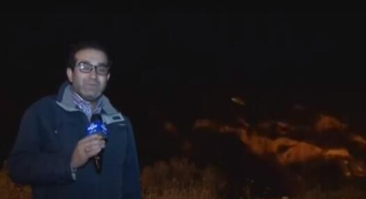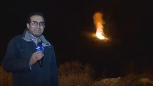 伊朗电视台记者站在发射孔前进行报道