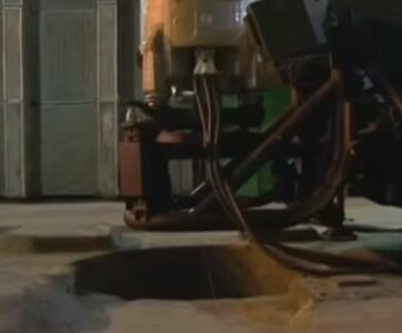 导弹竖立在地窖内,对准发射孔,可见上方洞壁可能只有几米厚