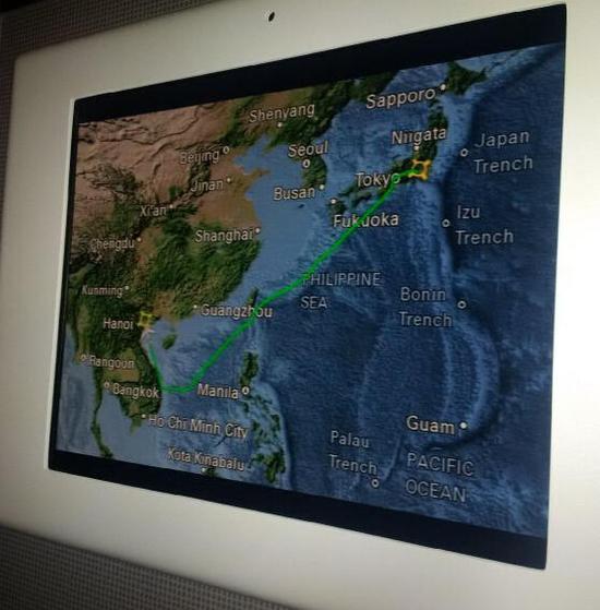 奥巴马23日乘坐空军一号专机抵达越南,开始正式访问。飞机上还有大批记者随行。美国CBS驻白宫记者Mark Knoller发布了一张航迹示意图,称这是空军一号前往越南时的飞行路线,飞机为了避开南海沿着海岸飞行,并绕了一大圈。从图中看,飞机的飞行轨迹确实没有直飞,而是绕行了一段距离,避开了一些区域。