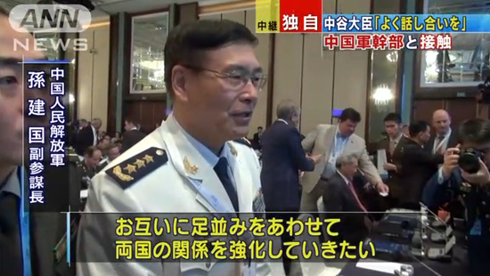 孙建国与日本防卫相中谷元站立交谈(日本ANN新闻网 新闻截图)