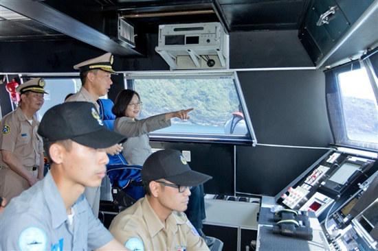 据台湾《中国时报》5日报道,蔡英文4日赴宜兰苏澳视察海军“沱江舰”。