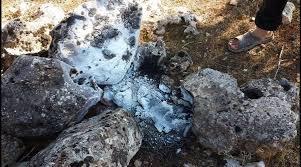 被俄军燃烧弹烧成粉末状的石块
