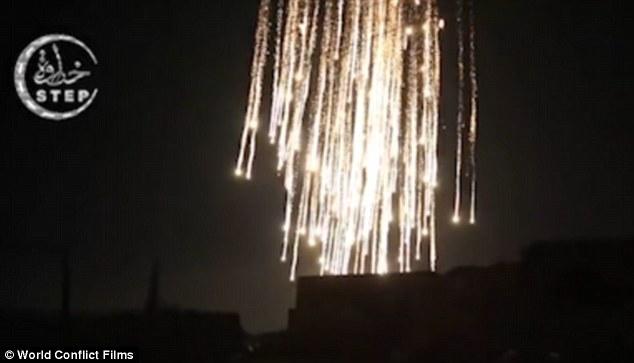 网传去年12月俄军使用白磷弹轰炸叙利亚恐怖分子据点照片
