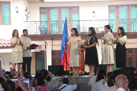 9点20左右,菲律宾原内政部长林炳智遗孀莱妮·罗布雷多先宣誓就任副总统,12点左右杜特尔特宣誓就任总统。