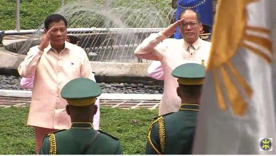 在杜特尔特宣誓前,先举行了阿基诺三世的卸任仪式