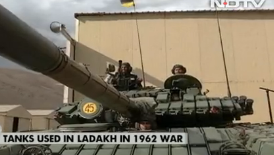 印度电视台画面截图,部署到阿克赛钦当面的印度T-72M1坦克