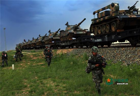 “红军”铁路投送梯队抵达朱日和