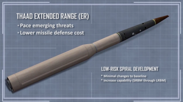 计划中的增程型萨德导弹,采用两级火箭,拦截能力可以赶上“标准3”,达到拦截洲际导弹要求的下限