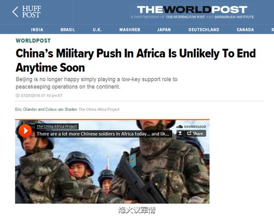 美国《赫芬顿邮报》7月25日发表 的 欧洲外交关系理事会政策简报指出,过去的五年里中国在非洲的军事存在已经发生了深刻的变化。2012年之前,中国只是在多国维和行动中发挥低调的支援作用——派遣军事工程师和医务人员,并没有在这里部署作战部队。然而今天的情形已经大不一样了。
