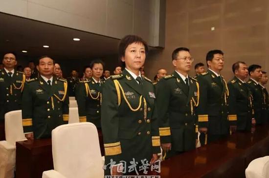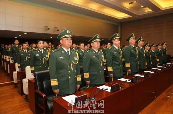 军歌》声中结束。随后,武警部队党委常委与晋升警衔的警官合影留念。(中国武警网)