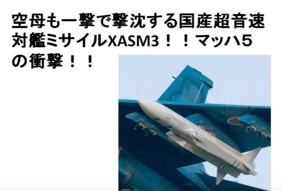 日本F-2战斗机携带XASM-3反舰导弹试验弹进行试验,该导弹采用固冲合一发动机,比台湾“雄风3”导弹技术水平高一个档次,接近苏联Kh-31或Kh-41,不过与中国鹰击-12导弹相比还是有相当差距,迄今为止尚未进行过打靶试验