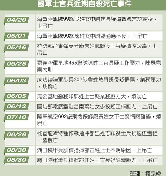 军事:台军1天内连发两起自杀事件 近5个月已有11人自杀