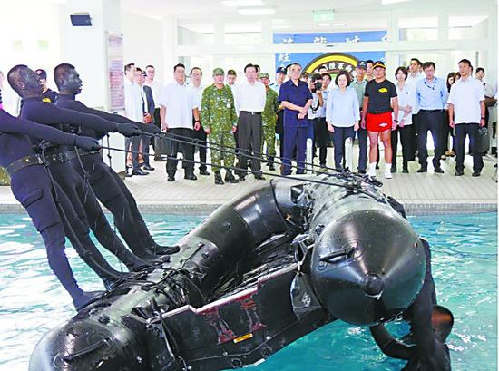 台湾“总统”蔡英文近日频繁视察台军各部队。仅12日上午,她就分别前往台湾海军陆战队66旅、陆军装甲542旅“慰勉官兵”。不过她此前在金门视察号称“台军最精锐特战部队”的两栖侦察营时,该部竟然选在游泳池中展示操舟特战技能,引起网友的热议。
