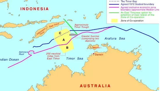 果然,印尼也“投桃报李”,为了换取澳大利亚对印尼吞并东帝汶的政治支持,印尼于1989年时与澳大利亚政府签订了一份出卖了东帝汶的“条约”,史称《帝汶海沟合作条约》。。。