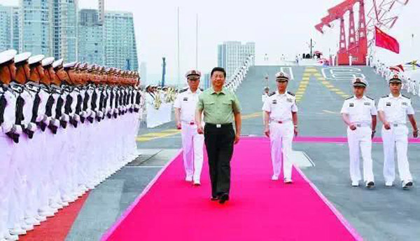 2013年8月28日下午,习近平登上辽宁舰并检阅水兵仪仗队。