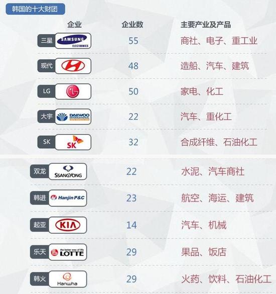 韩国十大财团名单