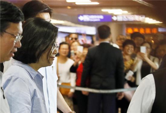 据台媒28日报道,今天下午,蔡英文到桃园机场视察时偶遇大陆游客,一位陆客突然高喊“和平统一”,蔡英文没有任何响应就离去。几位陆客表示,两岸是一脉相承,所以有一种两岸一家亲的感觉。