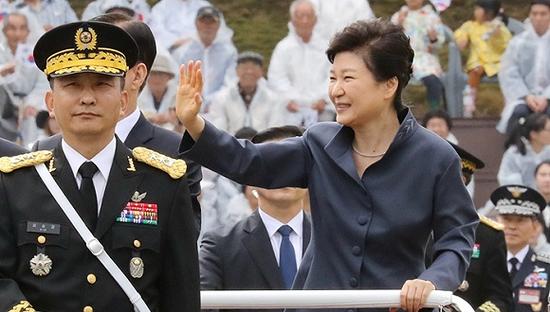 10月1日,韩国忠清南道,朴槿惠出席建军节纪念活动