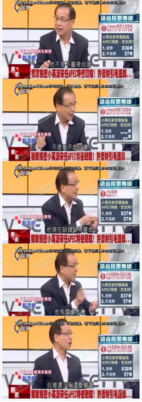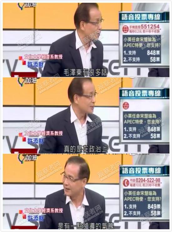 然后又说,大陆现在对台湾用两面派手法,显得很强势。其实内强中干,自己已经危机重重……