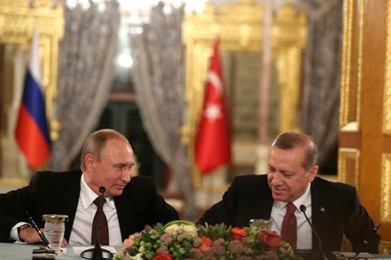 应土耳其总统埃尔多安邀请,10月10日,俄罗斯总统普京前往土耳其参加在伊斯坦布尔举行的第二十三届世界能源大会。随后,普京与埃尔多安举行会晤,两国签署了关于两国合作修建连接俄罗斯和欧洲的“土耳其流”天然气管道项目的协议。这是自土耳其击落俄战机,双方关系降至冰点以来,俄罗斯总统首次访问土耳其。土耳其《新曙光报》发表评论称,这是在过去两个月内埃尔多安与普京的第三次会面,显示在经过了一年的冷淡后,两国关系达到一个新的高度。