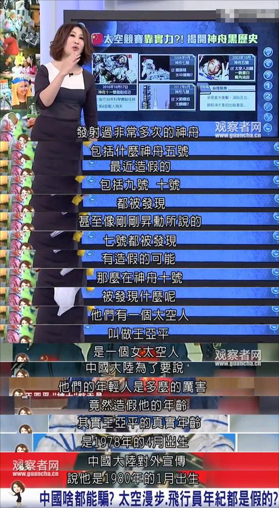 然而台媒明显还不止于此。在他们眼里,除了神舟七号,神舟九号、十号也全部都有造假。
