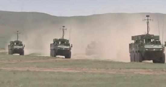 我军电子对抗营新一代电子对抗装备采用8*8轮式装甲车底盘,较之过去的卡车底盘机动性、防护力有很大提高