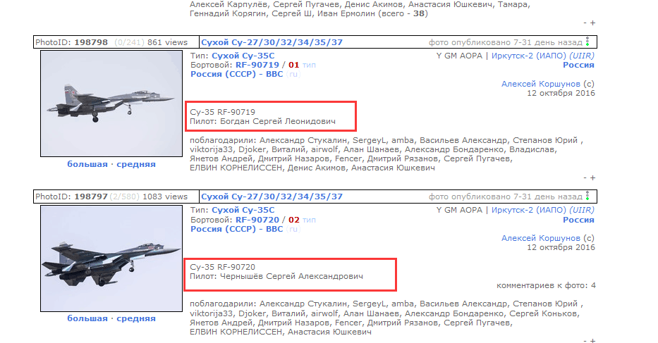 根据照片资料搜寻得到的编号01,02两架战机中的飞行员姓名。