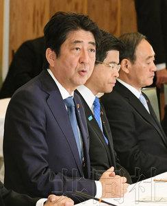 11月7日下午,日本首相安倍晋三在首相官邸举行的“政府与执政党联络会议”上发言。
