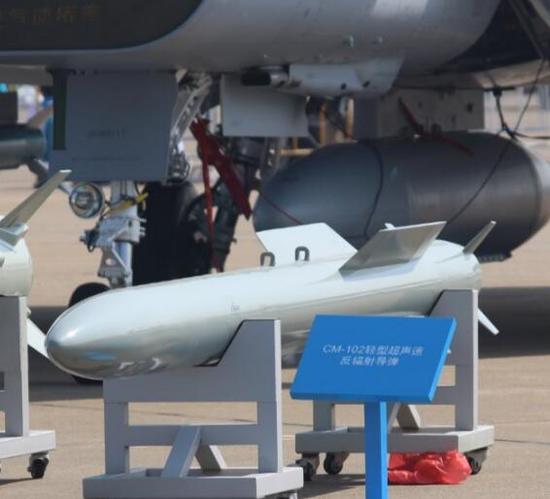 航天科工集团2014年带来模型,今年展示实物的CM-102轻型超音速反辐射导弹,概念类似美国AGM-88“哈姆”导弹