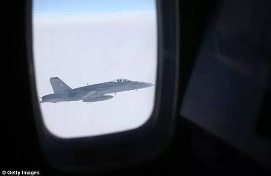 瑞士军机在几分钟内对专机进行抵近跟踪,并靠近至非安全距离。几分钟后,瑞士战机拉出一道长烟离开了。