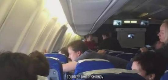 俄罗斯记者们机舱内拍摄瑞士战机,他们也一度担心会被要求迫降。虽然是坐在普京的总统专机上,但乘客还是非常紧张。