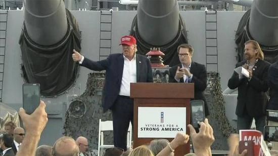 在战列舰甲板上发表讲话,承诺扩军的特朗普——之前有媒体认真讨论他让战列舰重新服役的可能性