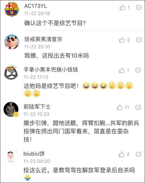 @电波震长空xiangyuanye 表示:“台军新兵手榴弹实弹投掷,要我说啊你干脆叫旁边的安全官替你投算了。我在新兵连时投实弹,连长就一个口令‘投’,你自己按照动作要领,操作步骤做就行了,而且在我军哪个连队投就由那个连队的主官做安全员。”