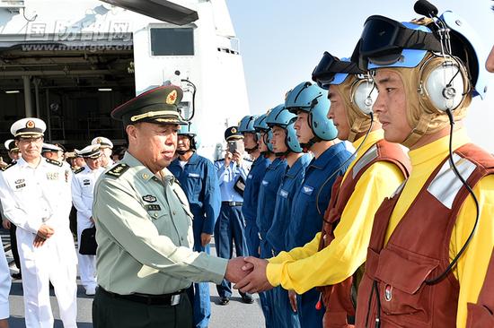 范长龙看望慰问正在吉布提靠港补给的海军第24批护航编队指挥舰官兵。