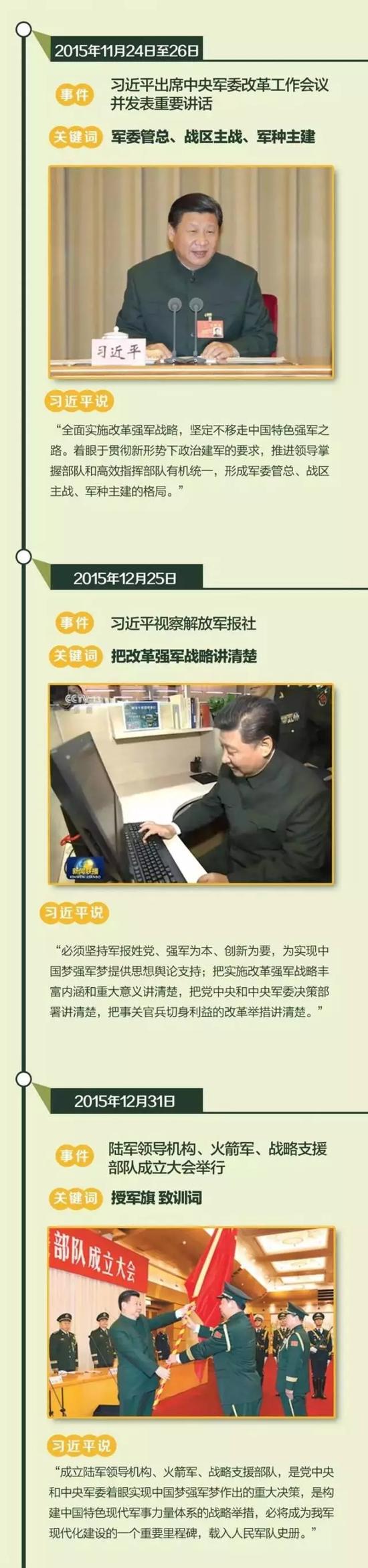 2015年11月24日至26日,中央军委改革工作会议在北京召开,中共中央总书记、国家主席、中央军委主席习近平发出深化国防和军队改革的动员令——全面实施改革强军战略,坚定不移走中国特色强军之路。