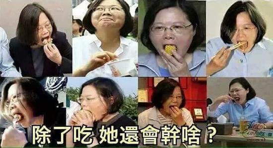 之后,蔡英文只要被拍到吃好的都会招致网友批评:不知民间疾苦。台湾网友还做了很多她吃东西的合成图。