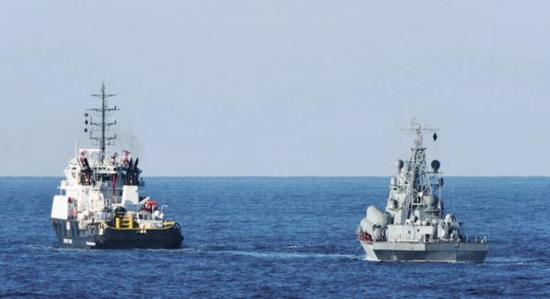 荷兰海军护卫舰拍摄到的照片显示,一艘俄黑海舰队派来与航母编队共同行动的导弹艇因故障被拖船拖走