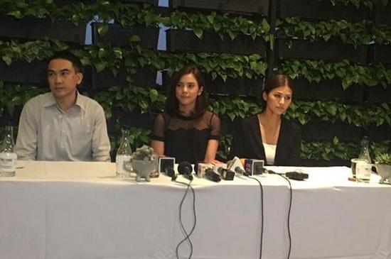 中为酒吧老板的女友Lakana “Aum” Wattanawongsiri。11月27日,她与律师(左一)出席发布会