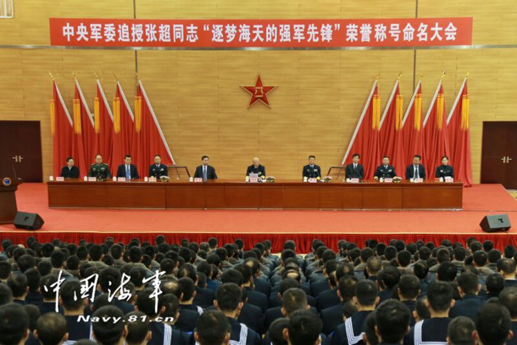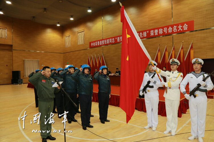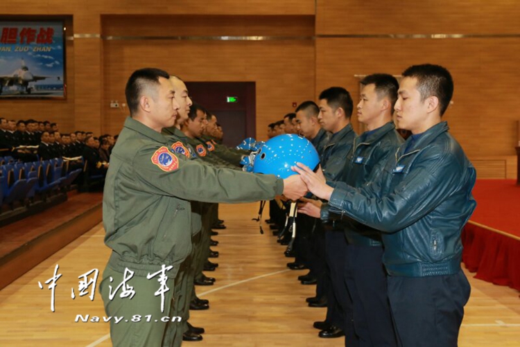 上周三,在中央军委追授张超“逐梦海天的强军先锋”荣誉称号命名大会上,从海军、空军三代机部队选拔的12名新入列舰载战斗机飞行员,从舰载战斗机老飞行员手中接过头盔,集体面向军旗宣誓。